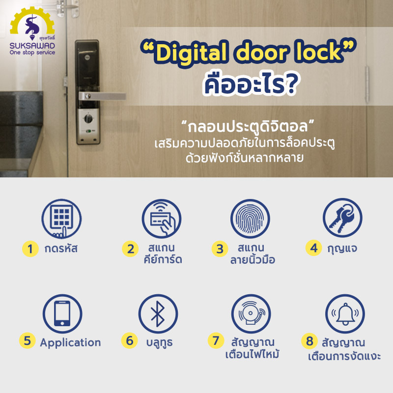 ที่ตอบโจทย์เรื่องความปลอดภัยในการล็อคประตู พร้อมฟังก์ชั่นทันสมัยในการปลดล็อคด้วยระบบกดรหัสผ่าน สแกนลายนิ้วมือ หรือ คีย์การ์ด รวมไปถึงยังมีสัญญาณเตือนภัยเมื่อมีการโจรกรรม งัดประตู อีกทั้งมีระบบป้องกันการสุ่มรหัสหรือการพยายามที่จะปลดล็อคด้วยวิธีต่างๆ และระบบล็อคอัตโนมัติเมื่อประตูปิด เป็นต้น นอกจากนี้ตัวเครื่องมีดีไซน์สวยงาม เหมาะกับการติดตั้งกับประตูหลากหลายชนิด เช่น ประตูไม้, เหล็ก, อลูมิเนียม ฯลฯ (ขึ้นอยู่กับคุณสมบัติของดิจิตอลดอร์ล็อคแต่ละรุ่น)